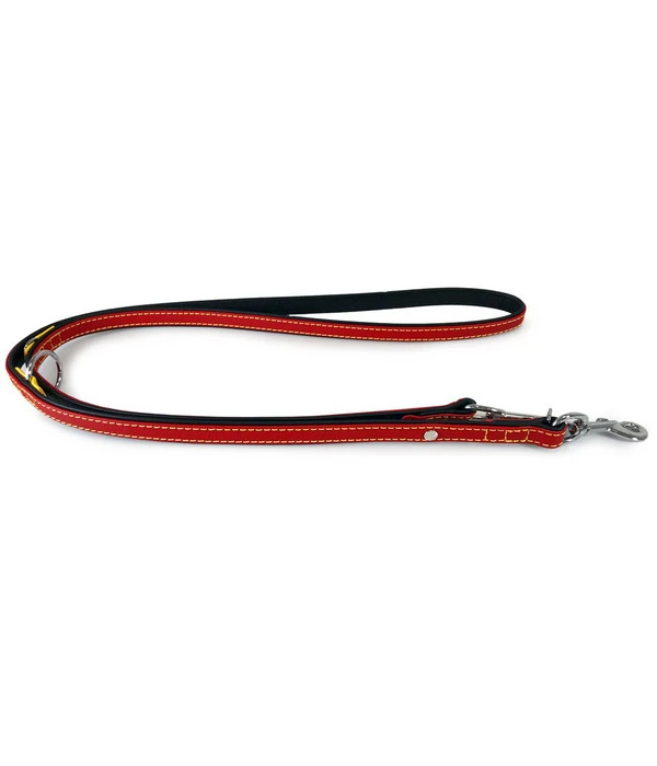 Die Führleine Frankfurt von Das Lederband gibt sich nicht mit einer Farbe zufrieden, sondern präsentiert sich stolz im Mix aus Rot, Schwarz und leuchtendem Gelb. Das wird auf Ihren Spaziergängen sicherlich immer wieder für bewundernde Blicke sorgen, denn diesen Farbmix sieht man wirklich nicht alle Tage. Noch ein Tipp: Damit die Farben so leuchtend bleiben, sollten Sie die Hundeführleine einmal monatlich mit einem Pflegemittel einreiben.