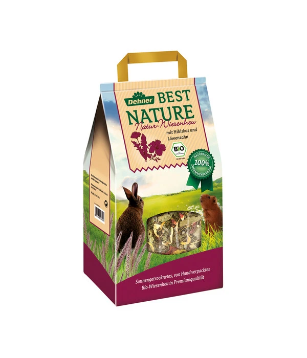 Heu ist für Kaninchen und andere Nager ein wichtiger Bestandteil ihrer Ernährung. Das schmackhafte Dehner Best Nature Bio Natur-Wiesenheu mit Hibiskus und Löwenzahn ist sonnengetrocknet und von Hand verpackt. Ein Bio-Wiesenheu in Premiumqualität für Zwergkaninchen, Meerschweinchen, Hamster & Co. mit einem sehr hohen natürlichen Vitamin- und Nährstoffgehalt. Das Bio-Heu mit bis zu 48 verschiedenen Gräsern, Kräutern und Blüten ist ein wahrer Leckerbissen für Kleintiere.