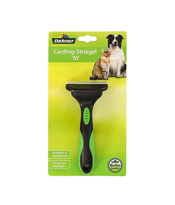 Je länger das Fell Ihrer Katze oder Ihres Hundes ist, desto intensiver sollten Sie sich um seine Pflege kümmern. Aber auch bei kurzhaarigen Rassen ist Kämmen und Bürsten zumindest in der Zeit des Fellwechsels angesagt. Damit die Fellpflege für Ihren Liebling so angenehm wie möglich ist, kommt dafür am besten hochwertiges Pflegezubehör wie der Dehner Carding-Striegel zum Einsatz.