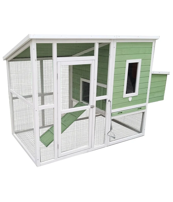 Wenn Sie sich für die Haltung von Federvieh begeistern, wird Sie der Hühnerstall Happy Farm Lotti in der bekannten Dehner Markenqualität sofort in seinen Bann ziehen. Das Geflügelhaus ist eine Zierde in jedem Garten und bietet zahlreiche Features, die den Produzenten leckerer Frühstückseier ein schönes und artgerechtes Umfeld bieten. Schon die ländliche Architektur sowie die farbliche Gestaltung des Stalls und des einbezogenen Freiluftbereiches sind attraktiv anzusehen. Das Hühnerhaus enthält zwei gemütliche Sitzstangen aus Holz, auf denen sich Ihre Lieblinge wohlfühlen können.