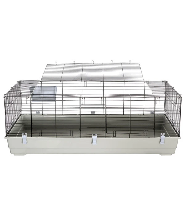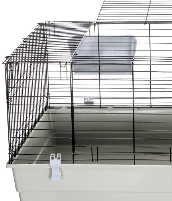 Das Dehner Nagerheim Peppy besteht aus einem pulverbeschichteten Metallgitter mit einem Drahtabstand von 28 mm und einer stabilen Unterschale aus Kunststoff. Damit Ihre Kleintiere ausgelassen im Käfig herumrennen können, ist der Boden mit einem praktischen Anti-Rutsch-Belag ausgestattet. Wenn Sie eines oder mehrere Ihrer Tiere herausnehmen möchten, lässt sich oben eine größere Metalltür öffnen, so dass Sie leicht hineingreifen können. Auch an das Thema Reinigung wurde gedacht. Dafür können Sie das gesamte Oberteil mit Hilfe der Clipse von der Unterschale lösen und haben so das gesamte „Appartement“ im direkten Zugriff.