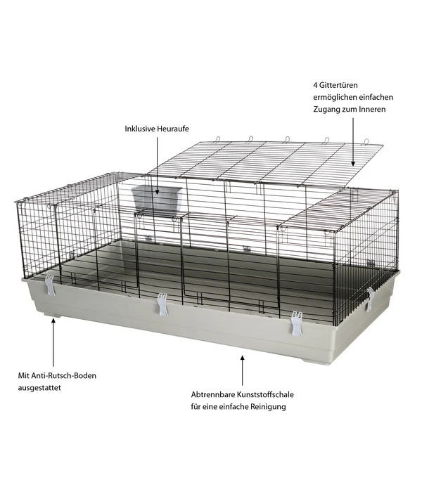 Mit Gittertür, Anti-Rutsch-Boden, inkl. Heuraufe
