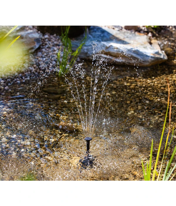 Ein Teich im Garten ist eine Oase der Ruhe und Entspannung, mit einem schönen Wasserspiel und dem damit verbundenen Wassersplätschern aber können Sie die besondere Ausstrahlung Ihres Gewässers noch steigern. Dafür brauchen Sie aber eine spezielle Pumpe, wie zum Beispiel das Esotec Solar Pumpensystem Rimini plus. Das Esotec Solar Pumpensystem Rimini plus ist ein steckerfertiges System, mit dem das Wasser für einen Wasserspeier in die Höhe gepumpt wird. Mit einer maximalen Förderleistung von 175 l/h und einer maximalen Förderhöhe von 60 cm ist das Esotec Solar Pumpensystem Rimini plus ideal für den Einsatz in einem kleinen Gartenteich.