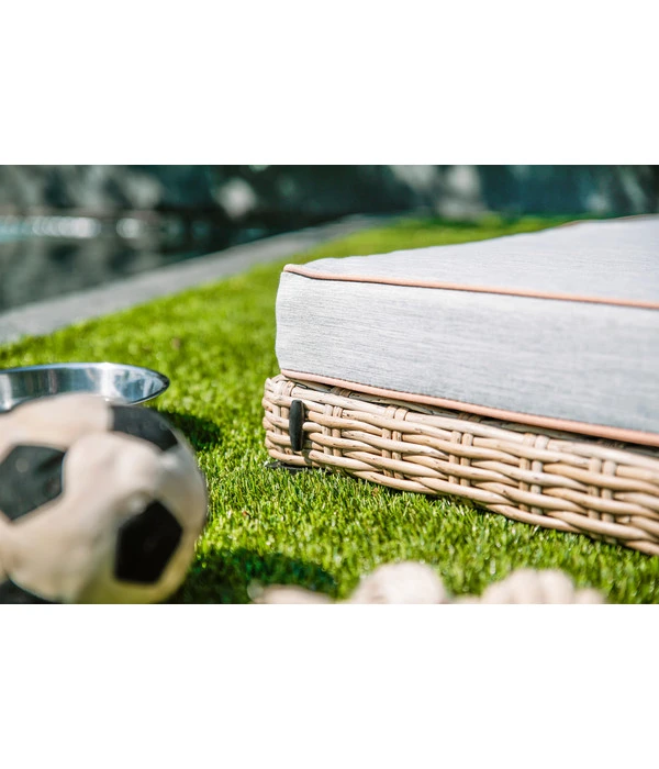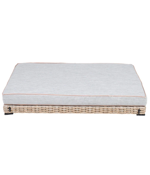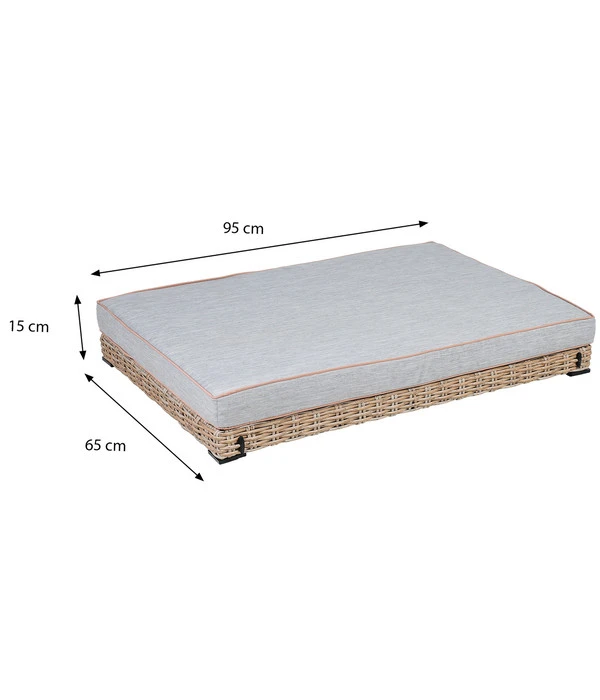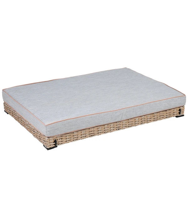 Die greemotion PET Outdoor-Haustierliege besteht aus einem stabilen Stahl-Gestell, das elegante Geflecht in Braun-Beige-Tönen wurde aus modernen Polyethylen-Fasern von Hand gefertigt. Dieses Geflecht sieht echtem Rattan zum Verwechseln ähnlich, es verfügt aber über beste Outdoor-Eigenschaften. Denn es ist widerstandsfähig, pflegeleicht, schmutz- und wasserabweisend. Was Sie ebenfalls schätzen werden: Das Hundebett ist so niedrig, dass Sie es platzsparend unter Ihrer Gartensitzbank oder in einer Mische verstauen können, wenn es mal nicht gebraucht werden sollte.