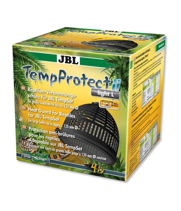 Wahrscheinlich wichtigstes Zubehör für Ihr Terrarium ist die richtige Beleuchtung. Denn Terrariumtiere sind meist wechselwarm, das heißt, sie brauchen künstliche Licht- und Wärmequellen, um ihre Körpertemperatur zu erhöhen. Doch da UV-Spots oder Halogen-Strahler sehr heiß werden, könnten sich Ihre Reptilien daran verbrennen. Wirksamen Schutz davor verspricht der JBL TempProtect II light L für JBL TempSets.