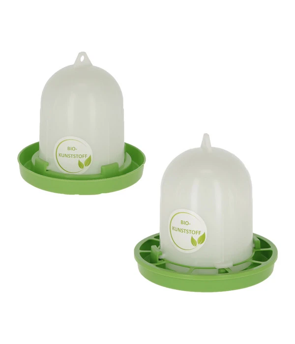 Mit dem von KERBL stammenden Hühnerzubehör Set Bio-Futterautomat & Bio-Kunststofftränke haben Sie ein trendiges Produkt für Ihr Federvieh. Der Futterspender als auch die Geflügeltränke sind aus lebensmittelechtem Bio-Kunststoff von nachwachsenden Rohstoffen hergestellt und zu 100 % recyclingbar. Den Futterspender bekommen Sie gleich mit aufklemmbarem Grill geliefert, der nur die gewünschte Futtermenge herausgibt und somit die Futterverschwendung verringert. Also bestellen Sie doch am besten noch heute das praktische Hühnerzubehör Set Bio-Futterautomat & Bio-Kunststofftränke von KERBL und schauen Sie schon bald entspannt Ihrem Federvieh beim Futter- und Wasseraufnehmen zu.