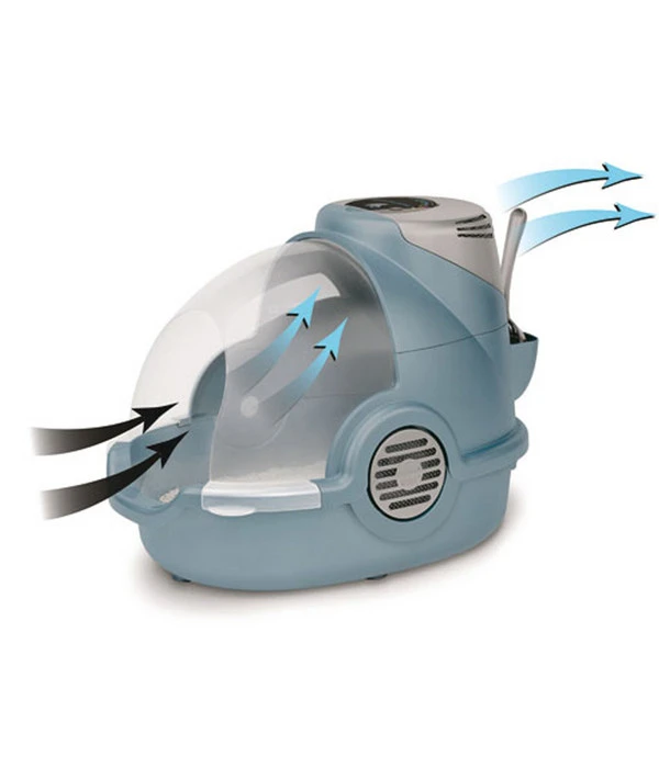 Die Geruch entfernende Bionaire™ Katzentoilette von Kerbl ist ein Muss für alle, die den Geruch von Katzenstreu vermeiden möchten. Sie ist auf einzigartige Weise so konstruiert, dass sie automatisch durch einen Lüfter mit geringem Stromverbrauch Staub und Gerüche in einen aktivierten Kohle- und Zeolith-Filter transportiert und somit unangenehme Gerüche aus der Katzentoilette beseitigt. Sie verfügt über eine Rollhaube, um verstreutes Katzenstreu zu vermeiden und die Reinigung zu erleichtern, eine elektronische LED-Anzeige, die anzeigt, wenn der Filter ausgewechselt werden muss.