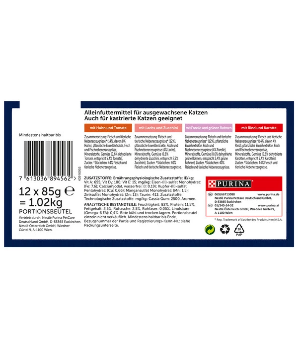 *) Stückchen: 44 % Fleisch und tierische Nebenerzeugnisse