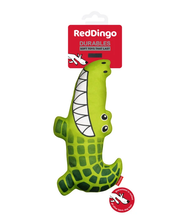 Das SGS-zertifizierte Red Dingo Hundespielzeug DURABLES Toys Krokodil, das mit seinem breiten Grinsen und dem frischen Grün sehr liebenswert daherkommt, trotzt mühelos dem Spiel Ihres treuen Gefährten. Ihr Hund kann dank des tierfreundlichen, weichen Futters ein angenehmes Beißgefühl erleben und seine Zähne werden geschont. Er wird gar nicht genug von seinem neuen Krokodilfreund bekommen können. Nach Bedarf können Sie das Stofftier einfach in der Maschine waschen und schon kann der Spaß weitergehen. Greifen Sie zu und genießen Sie die unbändige Freude, die Ihr Hund mit diesem Spielzeug genießt.