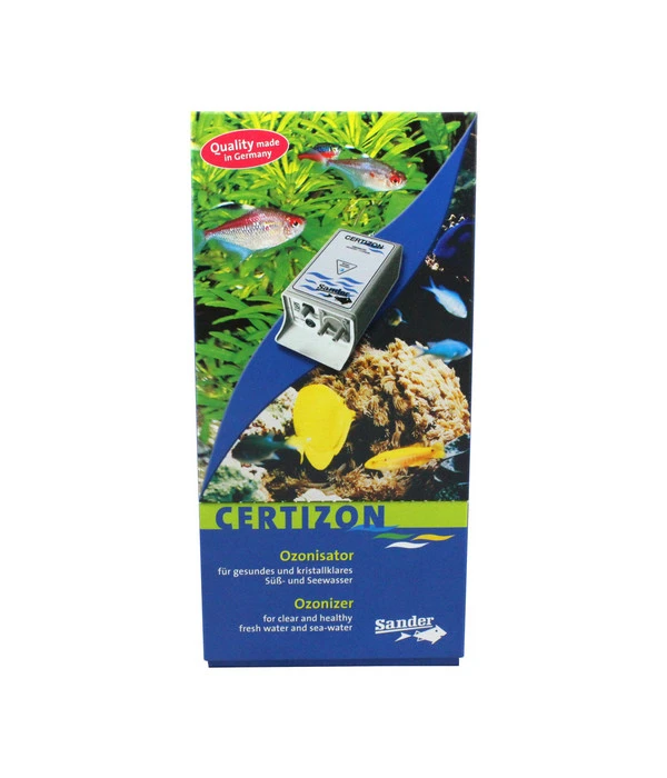 Für ein gesundes Aquarium ist eine gut funktionierende Filteranlage Voraussetzung, aber Filter sind dabei nicht immer ausreichend. Der Sander Aquarientechnik Ozonisator Certizon mit LED-Anzeige ist ein Gerät, welches zur Erzeugung von Ozon aus Luft entwickelt wurde und sowohl im Süßwasseraquarium als auch im Meerwasserquarium einsetzbar ist. Kristallklares und gesundes Wasser wird mit dem Sander Aquarientechnik Ozonisator Certizon geschaffen und steigert zudem die Leistung von Abschäumern und Biofiltern. Die organische Belastungen in Ihrem Aquarium sowie die Nitritbelastung werden reduziert. Der Ozonisator Certizon von Sander miniert das Auftreten von Krankheitserregern und ein niedriges Redoxpotential wird erhöht sowie stabilisiert. Die Ozon-Technik bewirkt, dass Gelbstoffe sowie biologisch schwer abbaubare Stoffe oxidieren. Der Energieverbrauch zur Ozonproduktion ist äußerst gering. Ausgerüstet ist der Sander Ozonisator Certizon mit einem Drehknopf für eine einfache und stufenlose Einstellung von 0 bis 100 %. Bei Bedarf ist das Ozon Element sehr einfach zu reinigen. Den Sander Aquarientechnik Ozonisator Certizon ist zur Tisch- oder Wandmontage geeignet.