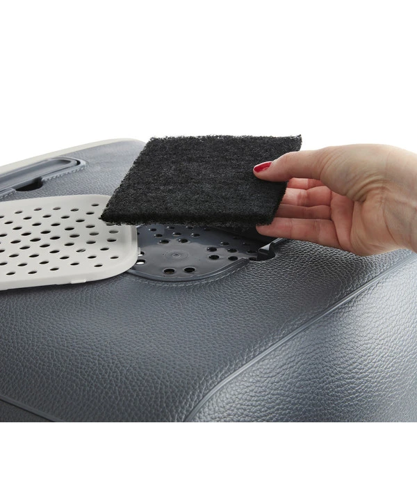 Bei allem Augenmerk auf Formen und Materialien steht jedoch die Nützlichkeit auch bei der SAVIC Katzentoilette Mira de luxe im Vordergrund. Wichtige Merkmale – wie ein geschlossenes Gehäuse und rutschfeste Standbeine – sind selbstverständlich vorhanden. Durch die Verwendung von einem leistungsstarken Aktivkohlefilter werden unangenehme Gerüche verhindert – wichtig nicht nur für Menschen, sondern auch für empfindliche Katzennasen, damit Ihre Lieblinge das Katzenklo stets gerne aufsuchen. Die herausnehmbare Innenschale, mit hohen Seiten und niedrigem Einstieg, erleichtert Ihnen die Reinigung und Ihrer Katze den Zugang. Auch die komplett abnehmbare Fronttüre macht das Sauberhalten zum Kinderspiel. Beschenken Sie sich und Ihre Katze mit dem Kauf der SAVIC Katzentoilette Mira de luxe, damit Ihr Zusammenleben noch harmonischer wird.