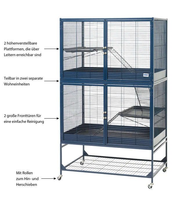Sei es Krankheit oder eine Verletzung, sei es Eingewöhnungszeit oder auch einmal eine Kabbelei, es gibt verschiedenste Gründe, warum Ihre kleinen Mitbewohner manchmal voneinander getrennt gehalten werden müssen. Eine Situation, auf die Sie mit einem SAVIC Nagerheim Suite Royal 95 Double bestens vorbereitet sind. Denn Sie machen dann aus einem Käfig einfach zwei. So können Sie selbst speziellen Bedürfnissen Ihrer Tiere ohne größeren Aufwand nachkommen.