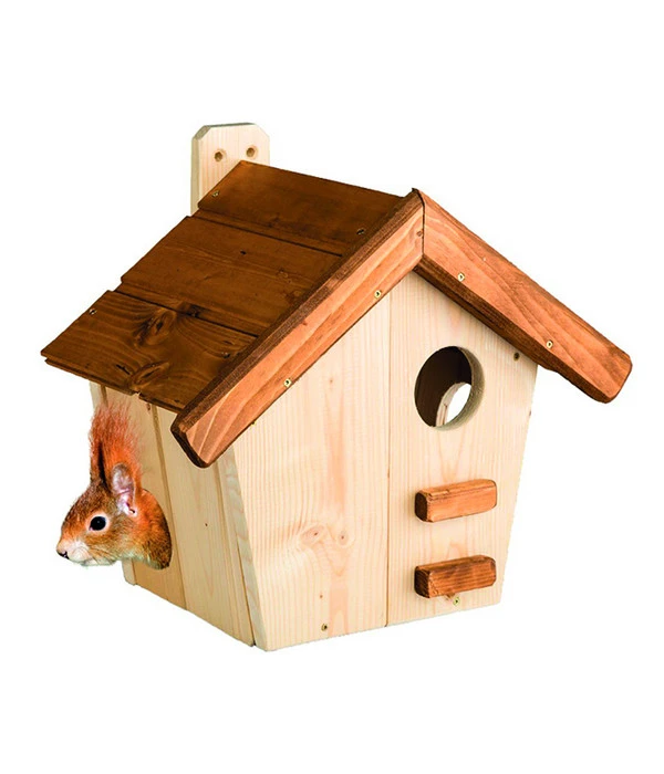 Die Holzkonstruktion der Marke Siena Garden ist durch eine stabile Verbindung von Dach und Korpus äußerst robust und bietet den genügend Platz, um darin zu wohnen. Mit den beiliegenden Schrauben kann der Kobel Maja fest verankert werden. Zudem ist dank einer seitlichen Klappe eine Reinigung problemlos durchführbar. Dadurch schützen Sie aktiv die Gesundheit der kleinen Racker. Im Gegensatz zu einem Vogelnistkasten besitzt der Siena Garden Eichhörnchenkobel Maja mehrere Zu- und Ausgänge. Seine Nutzer mögen es gerne, wenn verschiedene Fluchtmöglichkeiten vorhanden sind. Auch begrüßen die Interessenten die Verwendung von natürlichen Materialien. Darum haben die Architekten von Siena Garden das Bauwerk aus langlebigem und hochwertigem Fichtenholz gefertigt. Also, worauf warten Sie noch? Bestellen Sie jetzt gleich einen oder mehrere Exemplare des Siena Garden Eichhörnchenkobels Maja!