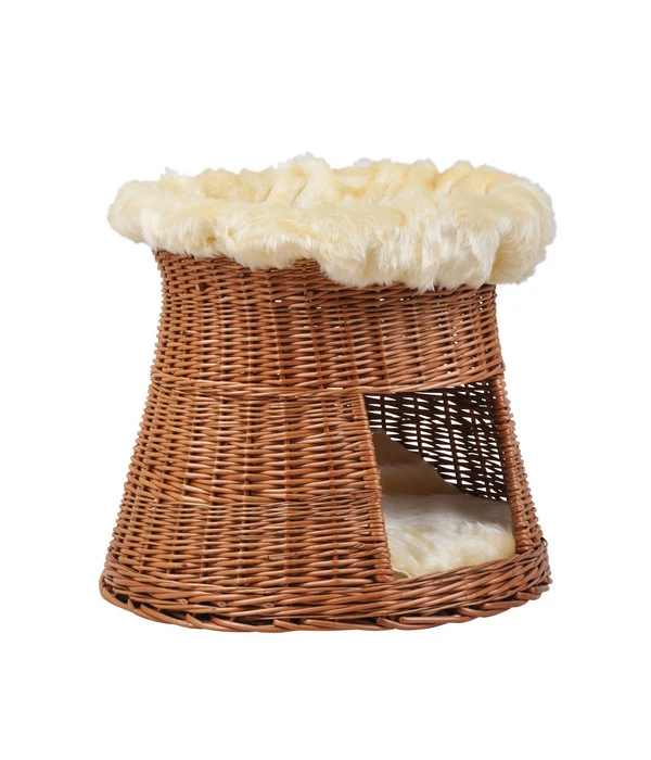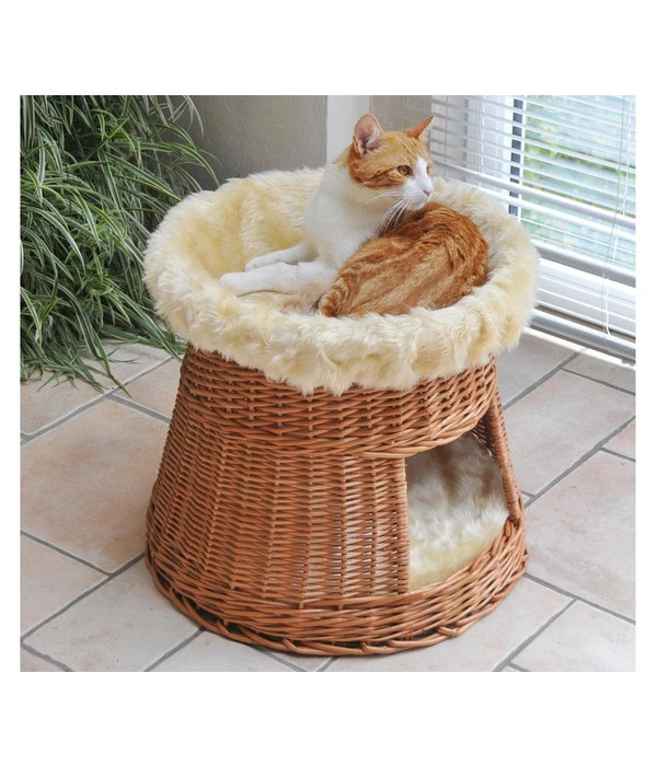 Diese Katzenhöhle Korbturm von Silvio Design bietet eine Höhle und Liegemulde in Einem und dient als gemütlicher, weicher Rückzugsort für Ihren Liebling. Die Katzenhöhle aus attraktivem, europäischem Weidengeflecht fügt sich durch die natürliche Optik angenehm in Ihre Räumlichkeiten ein. Die Kuschelhöhle ist mit einem Kissen aus Vlies und weichem Plüschbezug, der gewaschen werden kann, ausgestattet, was ein weiches und gemütliches Kuschelfeeling bewirkt. Für noch mehr Genuss und Entspannung bei Ihrer Katze, wurde die Kissenfüllung mit Katzenminze versehen. Oben auf der Katzenhöhle gibt es eine besonders angenehme und kuschelige Liegemulde. Dieser Liegeplatz ist mit einem abnehmbaren Plüschbezug versehen und wird bestimmt der Lieblingsplatz für alle Katzen, die gerne Beobachten und Relaxen. Die ansprechende Katzenhöhle aus natürlichem Material ist 50 cm hoch und findet mit dieser vorteilhaften Größe auch in kleineren Wohnungen ihren perfekten Platz. Mit dieser tollen Katzenhöhle Korbturm von Silvio Design bieten Sie Ihren Katzen ein absolut gemütliches Heim und Rückzugsort zum Schlafen, Verstecken und Beobachten.